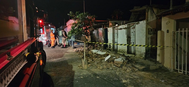 No local, os bombeiros constataram que parte da fachada frontal do imóvel cedeu em direção à via pública. O morador, Antônio Santiago, de 77 anos, estava na casa no momento do incidente, mas não sofreu ferimentos.