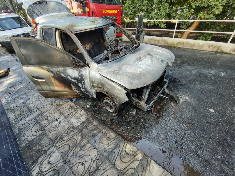 O automóvel, que estava estacionado em via pública sob responsabilidade de uma oficina mecânica enquanto aguardava reparos, teve o fogo iniciado por causas ainda desconhecidas. As chamas atingiram toda a parte dianteira do veículo.