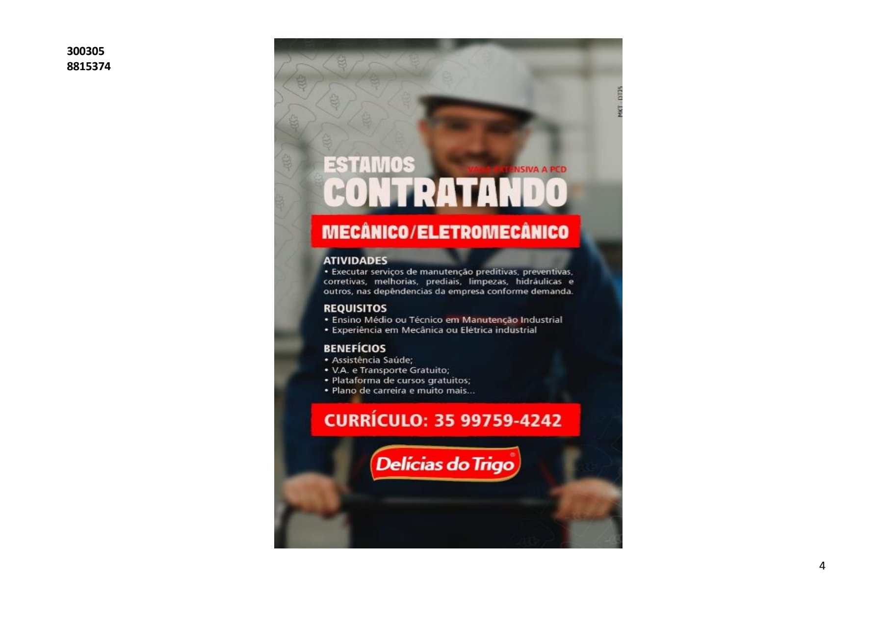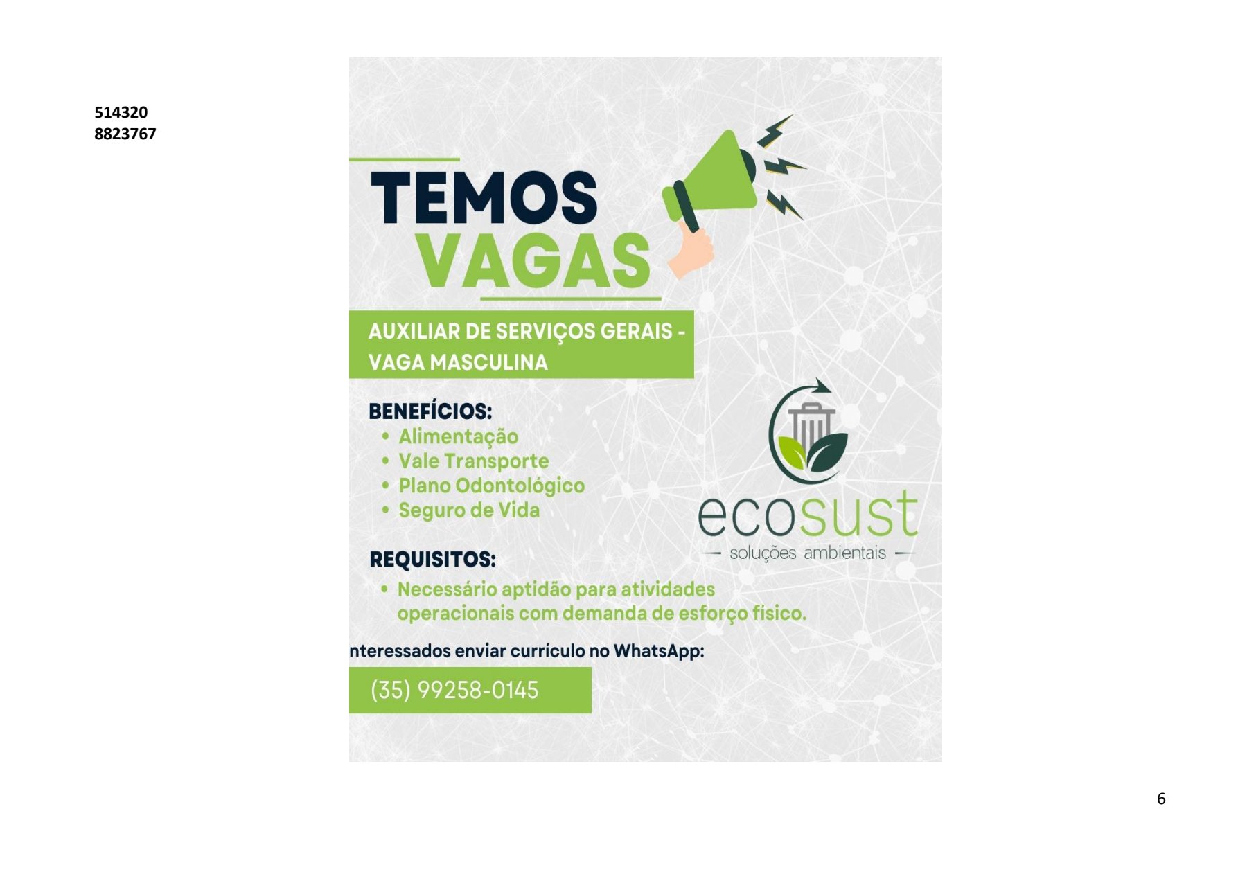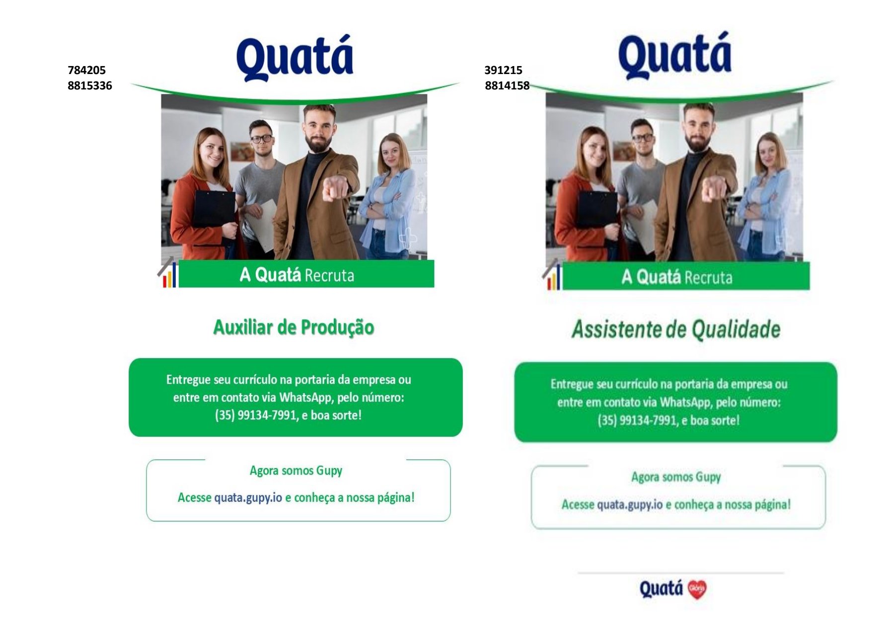 AS VAGAS DE EMPREGO SÃO POSTADAS NO GRUPO DE WHATSAPP DIARIAMENTE